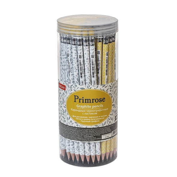 Карандаш чернографитный HB с ластиком Primrose Примроуз круглый корпус