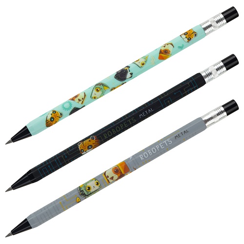 Карандаш механический 2,0мм MESHU Robopets с точилкой для грифеля