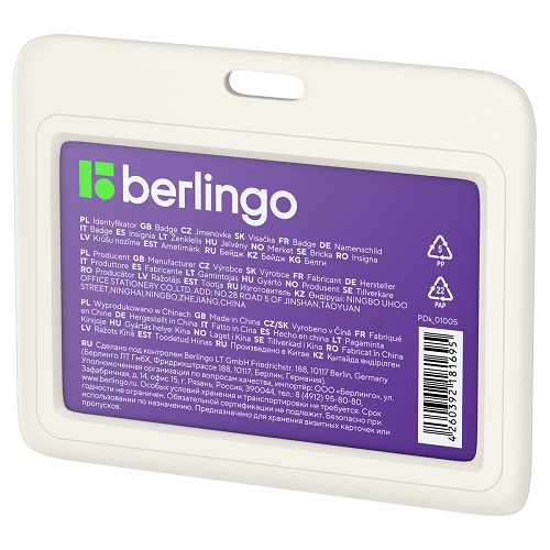 Бейдж горизонтальный Berlingo 85х55мм светло-серый без держателя