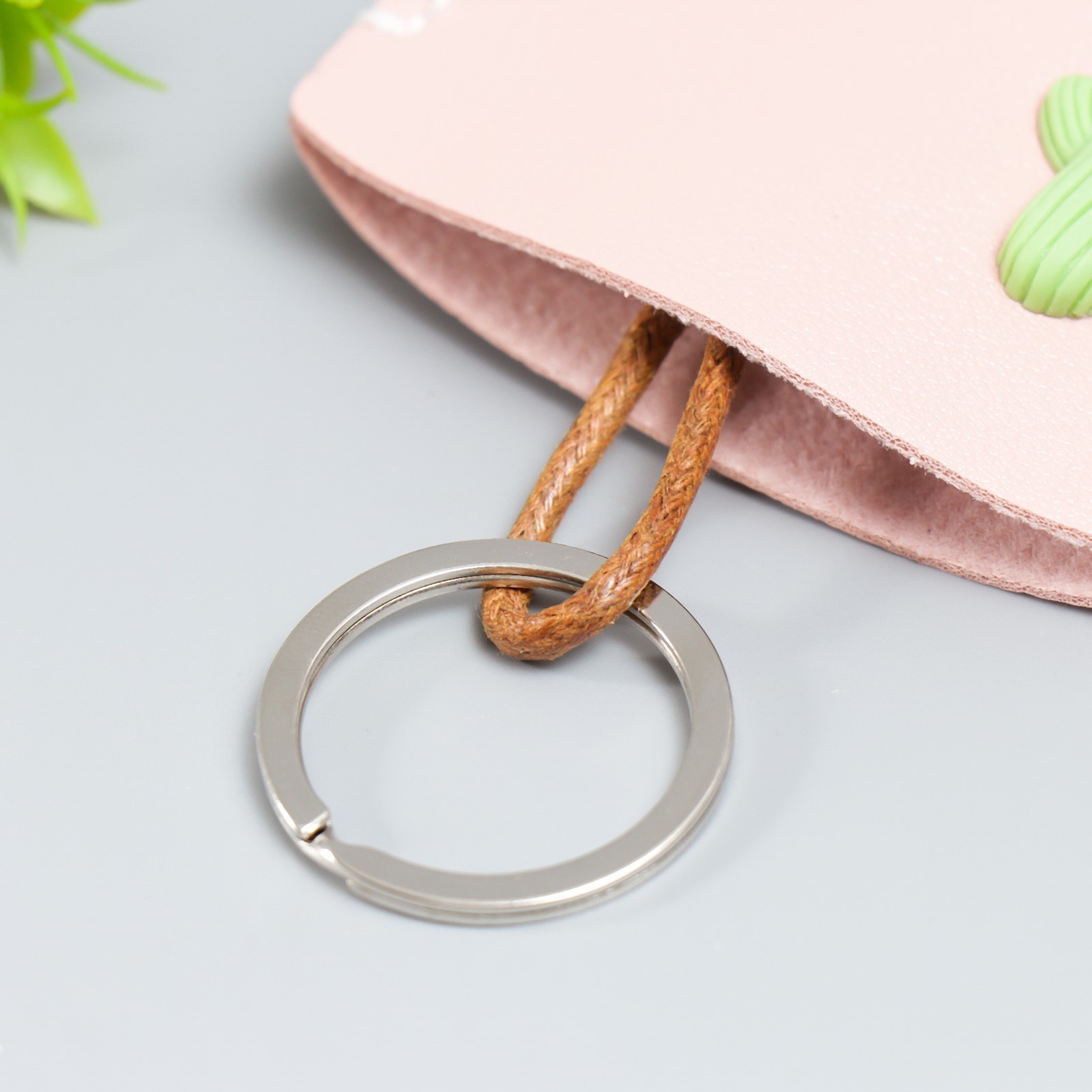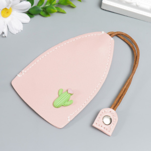 Брелок для ключей потайной Кактус с сердцем нежно-розовый кожзам 11,5 х 7,5см