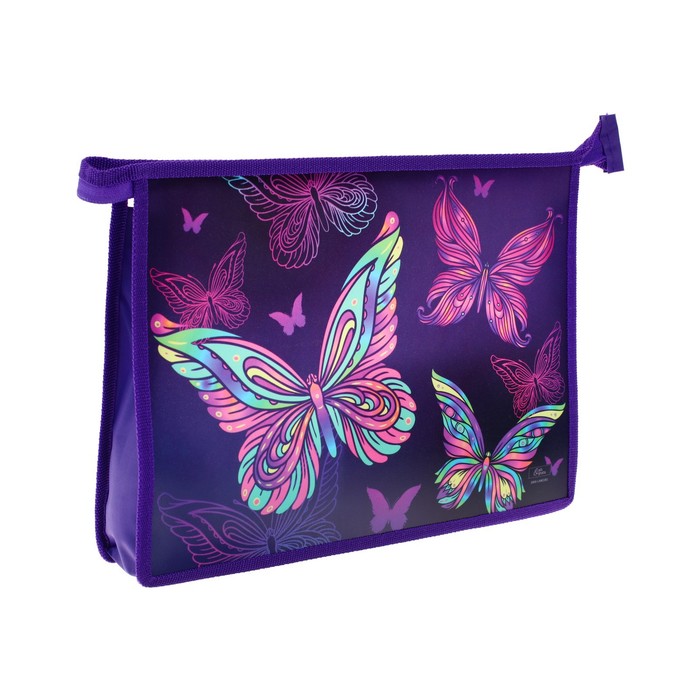 Папка для тетрадей А4, 230 х 325 х 55 мм, молния сверху, пластиковая, ПМ-А4-29 Calligrata "Бабочки"