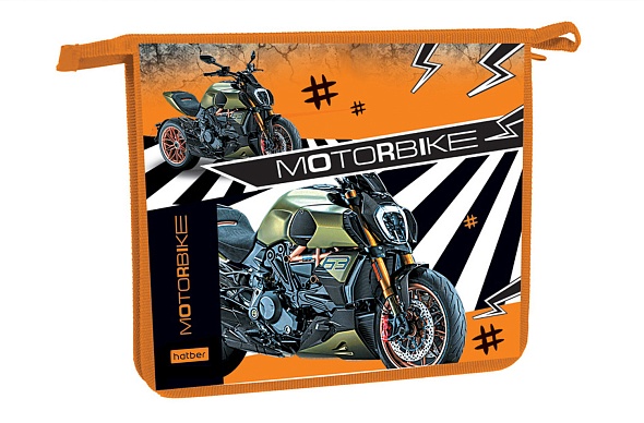 Папка для тетрадей А5 1 отделение Hatber Мотобайк 205х240х40мм на молнии