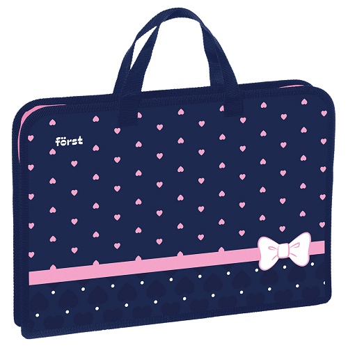 Папка для трудов А4 Först Sweet hearts 340х245х40мм пластик на молнии