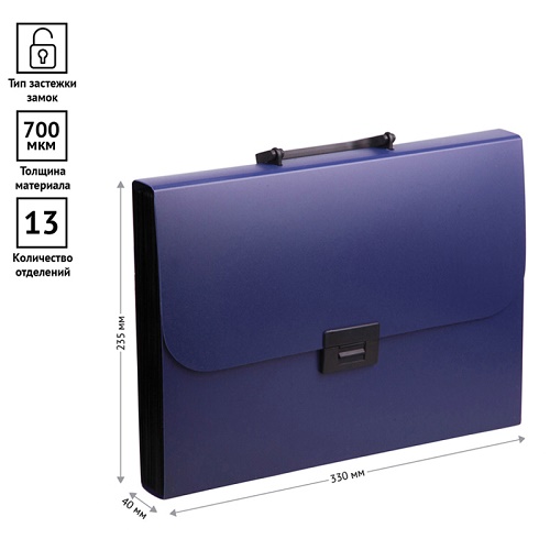 Папка-портфель 13 отделений OfficeSpace А4 700мкм на замке пластик синий