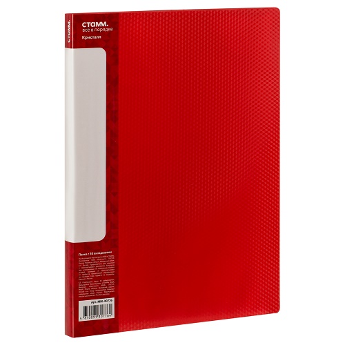 Папка 30 файлов А4 СТАММ Кристалл 17мм 700мкм пластик красная