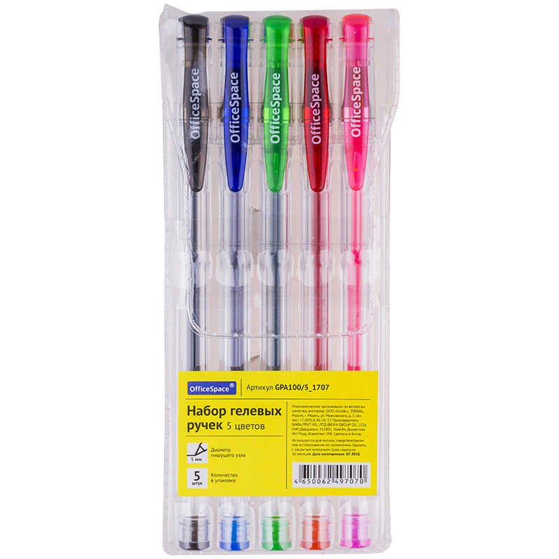 Набор гелевых ручек 5цв OfficeSpace 1,0мм