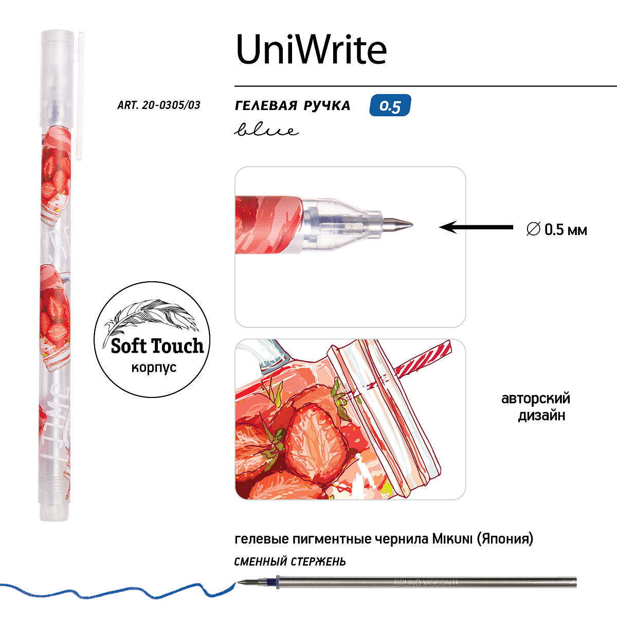 Ручка гелевая 0,5 мм синие чернила UniWrite Fresh Клубника