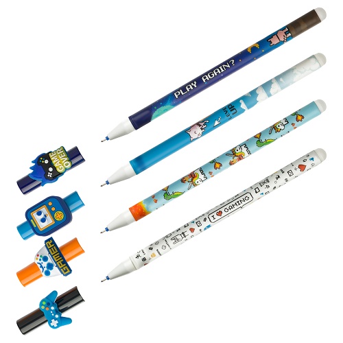 Ручка гелевая стираемая 0,5мм MESHU Games синяя ассорти