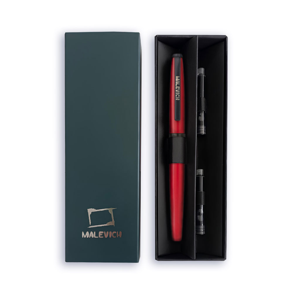 Ручка перьевая 0,4 мм EF с конвертером перо 2 картриджа (индиго, черный) красный