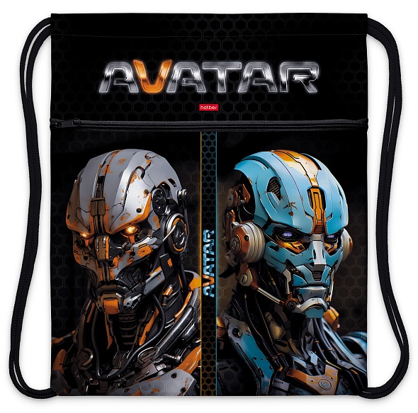 Мешок для сменной обуви 1 отделение Hatber Аватар 34х47см с карманом на молнии