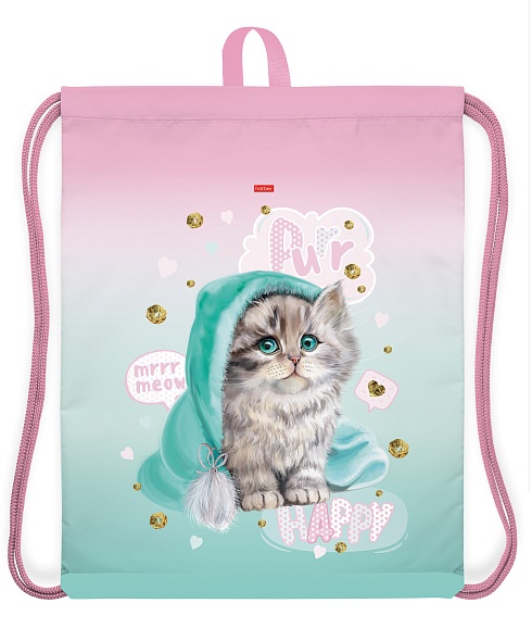 Мешок для обуви Hatber 41х49см 1 отделение с петлей для подвеса Милый котик