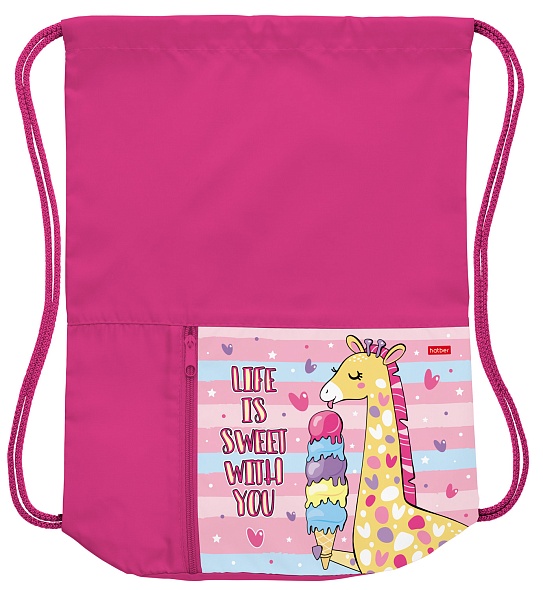 Мешок для сменной обуви 2 отделения Hatber Жирафик 34х41см с карманом на молнии
